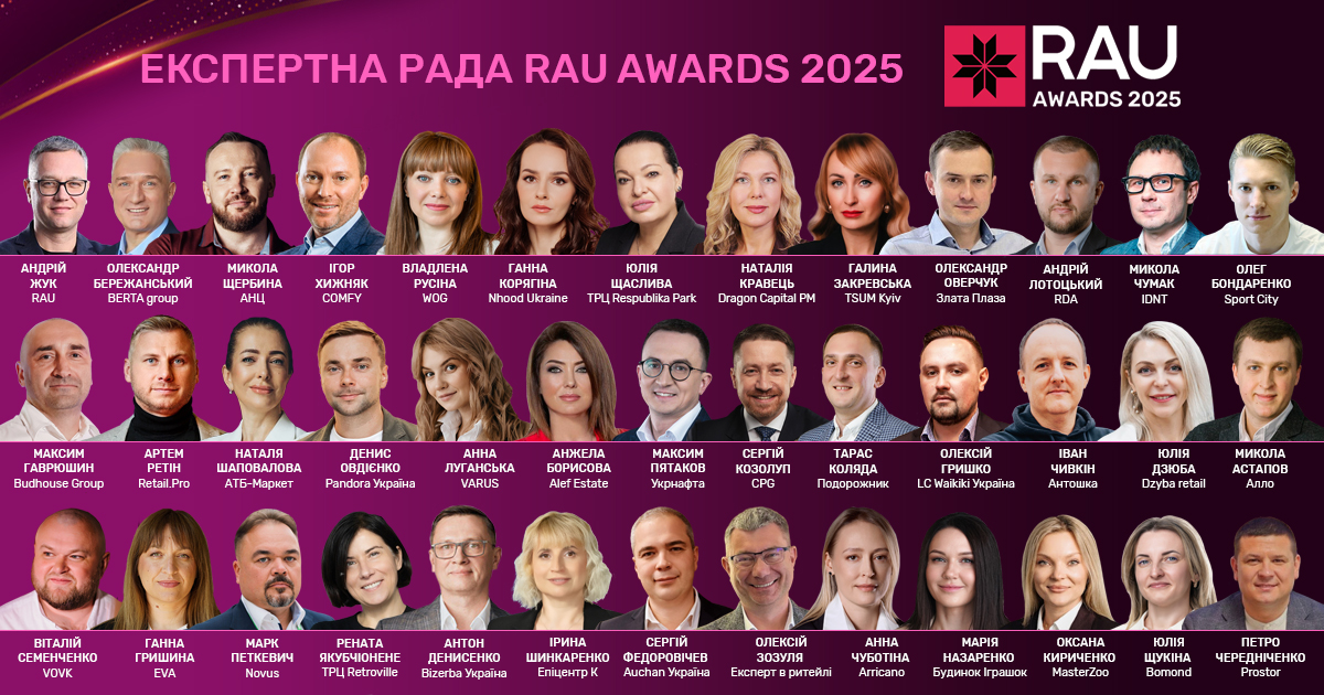 Номінантів цьогорічної премії RAU Awards 2025 оцінюватимуть власники та топ-менеджери провідних українських компаній разом з авторитетними експертами ринку ритейлу. У складі Експертної ради — 39 фахівці з бездоганною репутацією та глибокою експертизою у сфері роздрібної торгівлі та девелопменту.