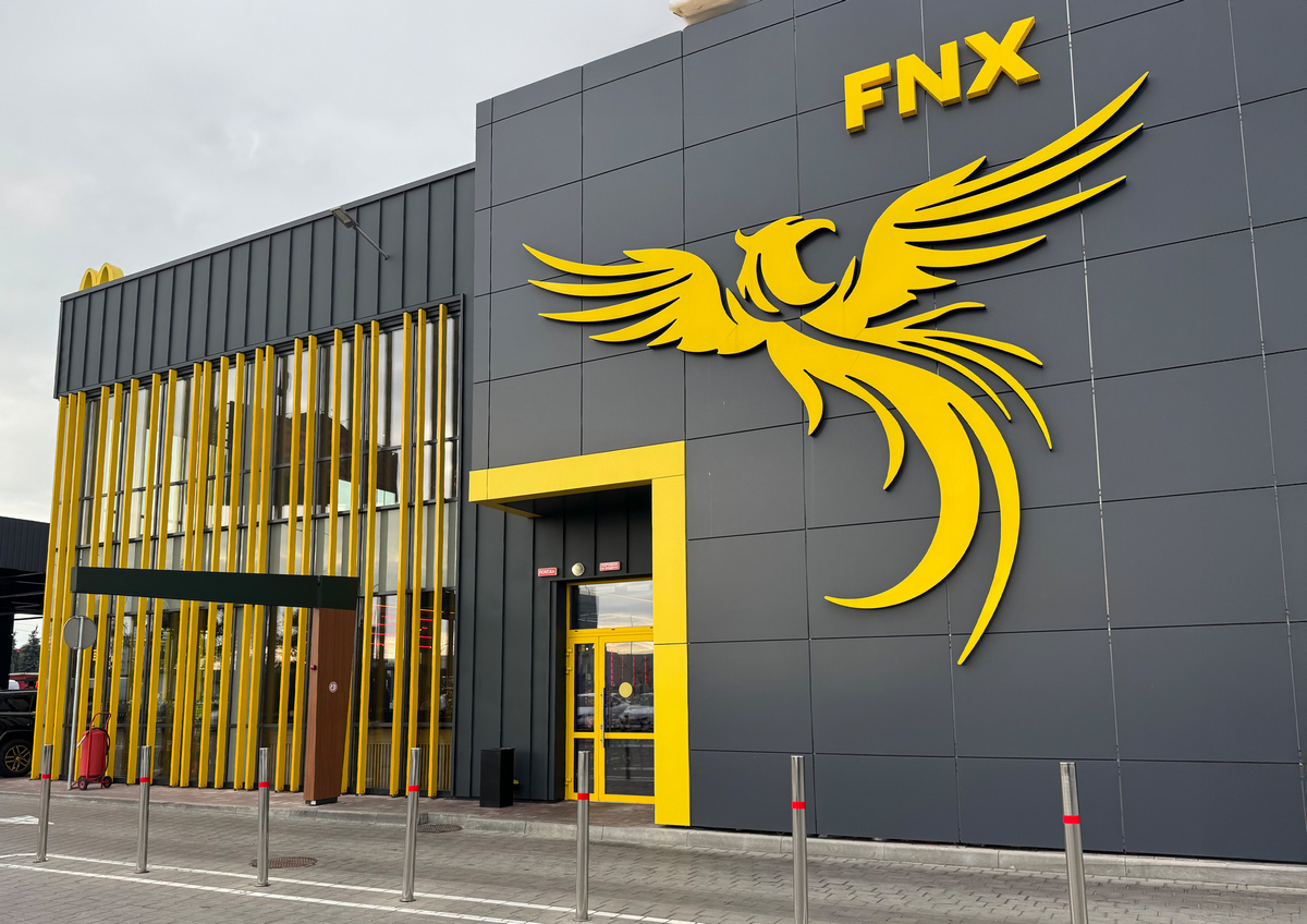 Одним з найочікуваніших для бренду KLO відкриттів було відновлення АЗК у Стоянці. Комплекс було повністю знищено ворожим снарядом під час військових дій на Києвщині. Його нова будівля, як Фенікс, повстала з попелу. Інтер’єр має відповідний дизайн, а фасад прикрашає птиця Фенікс.
